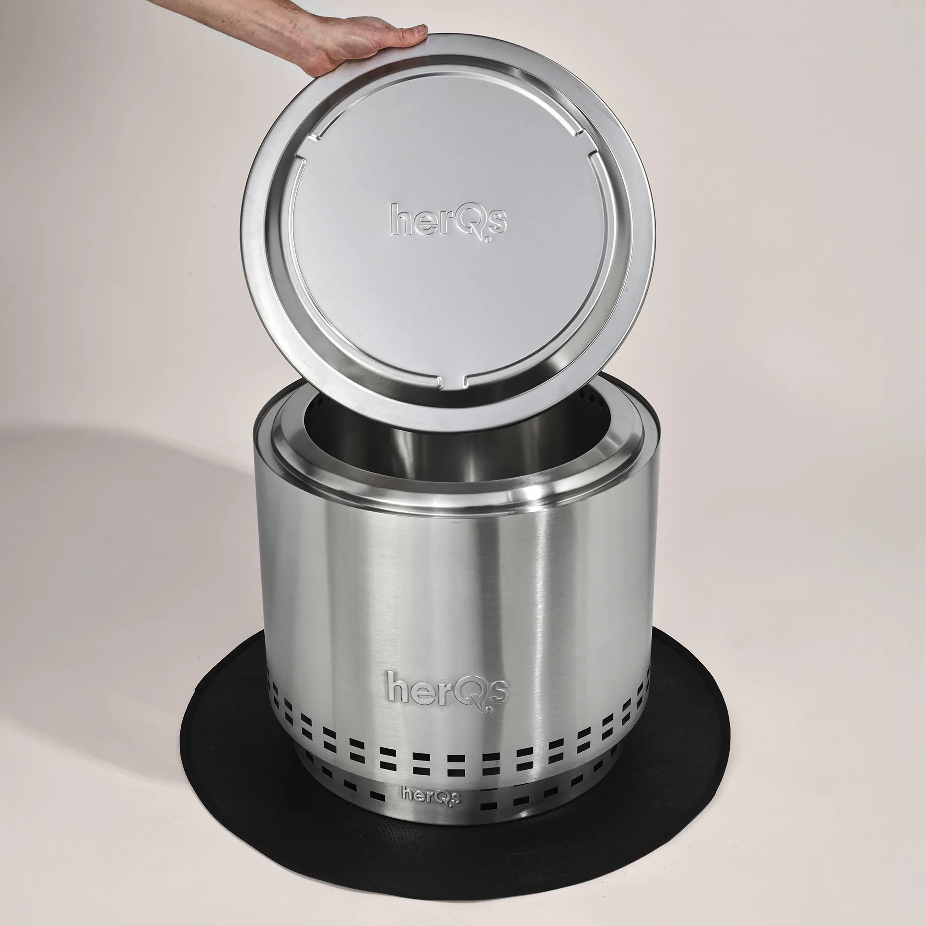 "Tuleaseme kaas mudelile herQs Blaze, mis aitab piirata sädemete lendumist ja vähendada pärast kasutamist hõõguvaid süsi. Katab tuleaseme, et õhtu lõpetamine oleks kontrollitum ja mugavam."
