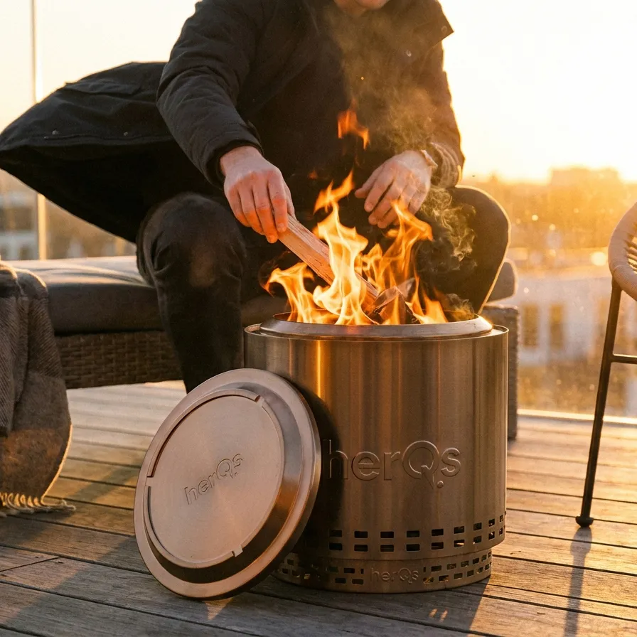 "herQs Cozy Closer padeda saugiai užbaigti kūrenimą, uždengiant ugniakurą, kad būtų sulaikytos kibirkštys ir prislopintos žarijos. Tai paprastas, kontroliuojamas būdas užbaigti vakarą ir ramiai grįžti į vidų."