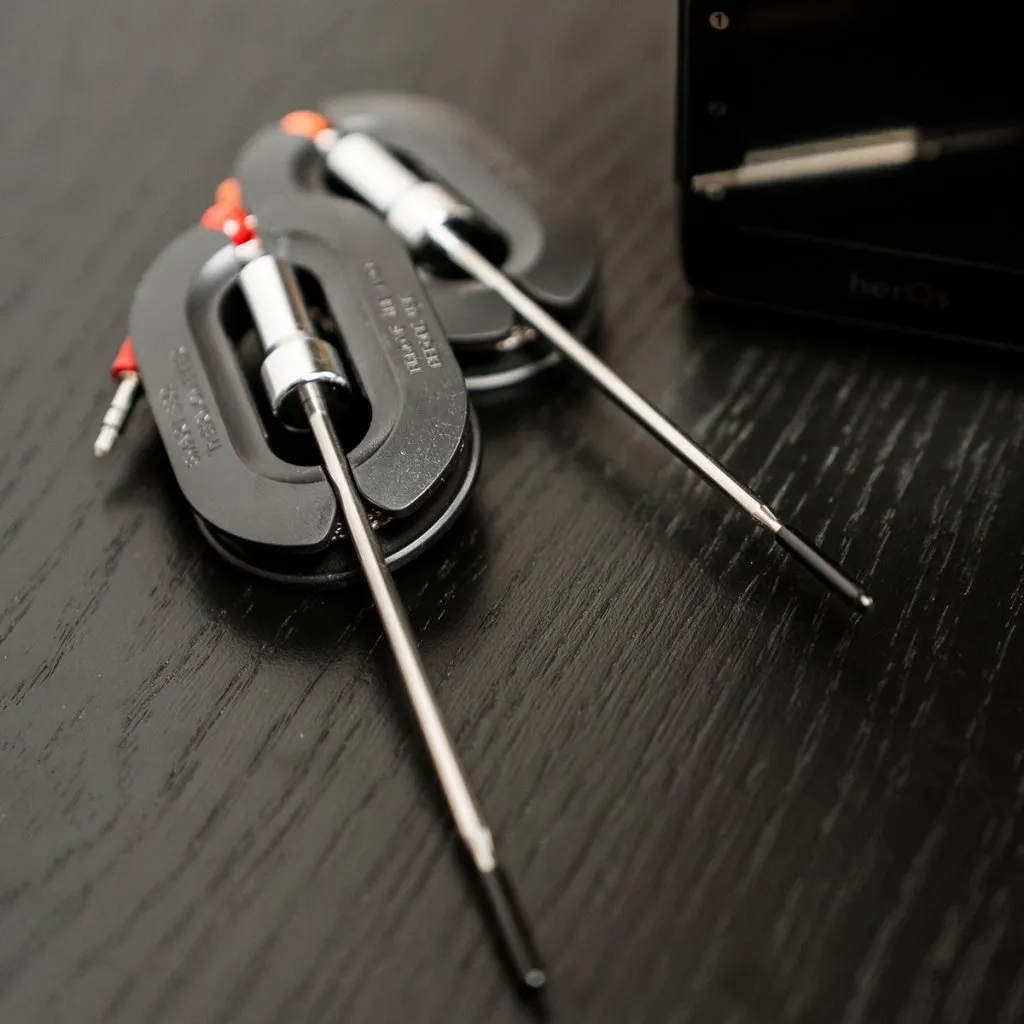 Ta dina kulinariska färdigheter till nya höjder med HerQs Professionals två typer av prober i rostfritt stål av professionell kvalitet. Dessa prober tål temperaturer från 0-300 ℃ (32-572 ℉) och ger en noggrann precision inom ± 1% vid lägre temperaturer och ± 2% vid högre temperaturer. Uppnå exakt den stekhetta du vill ha, från en sällsynt biff till en perfekt bakad limpa.